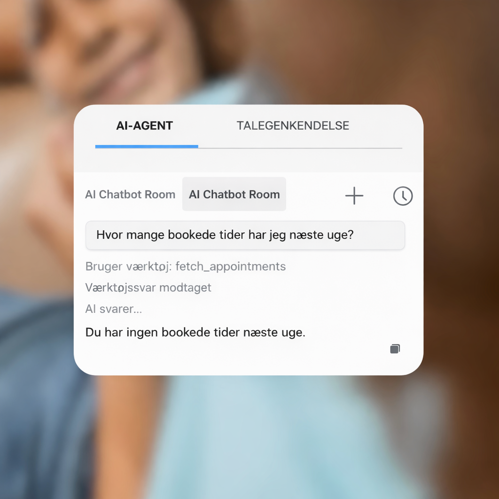 Muntras Agentic AI er en direkte integreret AI-assistent i journalsystemet, som lader dig stille spørgsmål og arbejde med patientjournal, tidsbog og behandlinger i samme sammenhæng. I stedet for at lede i forskellige visninger kan du bruge AI’en til hurtigt at få overblik, finde den rette information og arbejde mere effektivt i hverdagen. AI’en kan for eksempel koble patient og chat sammen, så den rette kontekst altid følger med i dialogen.
